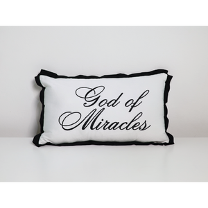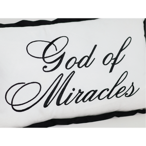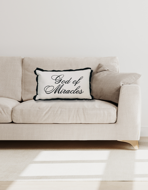 Introducing the "God of Miracle" Cushion by Grace Label—where elegance meets divine comfort. This luxurious cushion is crafted from soft white velvet, adorned with intricate black embroidery, creating a striking contrast that embodies sophistication and grace. Its plush padding ensures optimal comfort, making it a perfect addition to any living space. Elevate your home decor with this exquisite piece that reflects both style and serenity. Ideal for those seeking a touch of heavenly comfort in their everyday life.